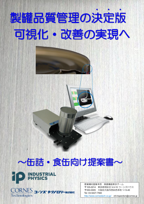 巻締検査による巻締状態を把握する事で、シーマーの調整不良の検出にも役立ちます。 また、トレーサビリティの関係から、測定値の記録・保管だけでなく定期的な測定機器の校正も重要となります。 本提案書では、お客様のニーズに合わせた様々な製品のご紹介をいたしま...