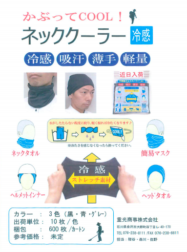 ・のびーるタオル ほどけて落ちない! 薄くかさばらない! ・ネッククーラー 冷感ストレッチ素材 水がしたたらない程度に絞り、軽く振れば冷たくなります ◆詳細はカタログをダウンロードしてご覧ください。