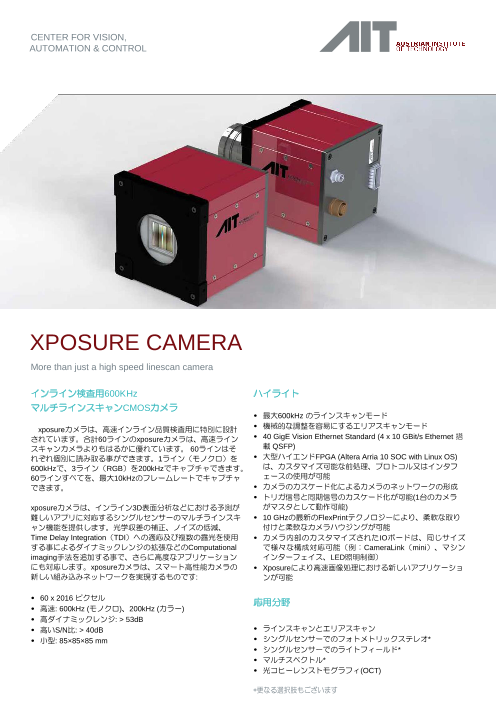 オーストリアAITが提供するマルチラインスキャンCMOSカメラxposure Cameraは高速インライン品質検査用に特別に設計されています。合計60ラインのxposureカメラは、高速ラインスキャンカメラよりもはるかに優れています。 60ラインはそれぞ...
