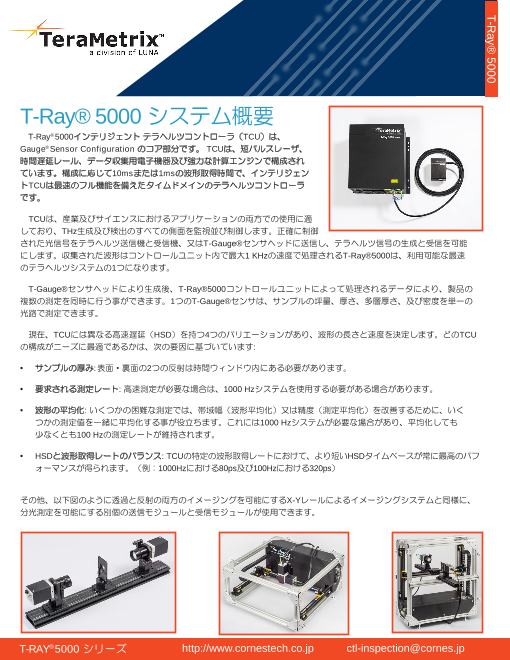 TeraMetrix(テラメトリクス)社が提供するセンサは、既存の光学技法では困難であった不透明体材料の内部構造検査や多層膜厚測定、塗装(ペイント)の検査などを容易に実現することができます。安全設計(アイセーフ)により有資格者が不要で、従来のX線や放射線...