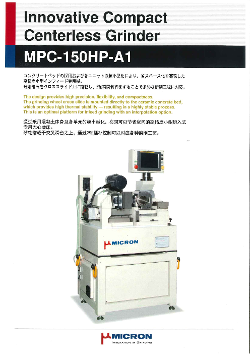 コンクリートベッドの採用および各ユニットの超小型化により、省スペース化を実現した高精度小型インフィード専用機。研削砥石をクロススライド上に搭載し、2軸補間制御をすることで多彩な研削工程に対応。 ◆詳細はカタログをダウンロードしてご覧下さい。