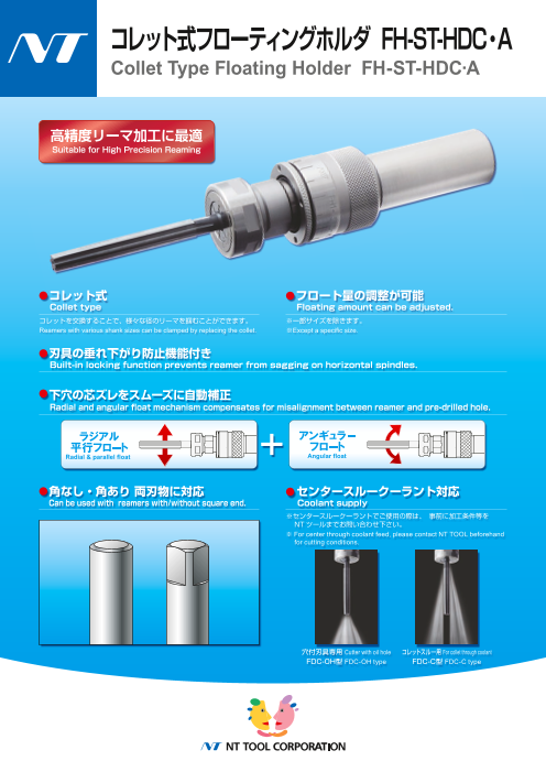 ・コレット式 ・フロート量の調整が可能 ・刃具の垂れ下がり防止機能付き ・下穴の芯ズレをスムーズに自動補正 ・角なし・角あり 両刃物に対応 ・センタースルークーラント対応