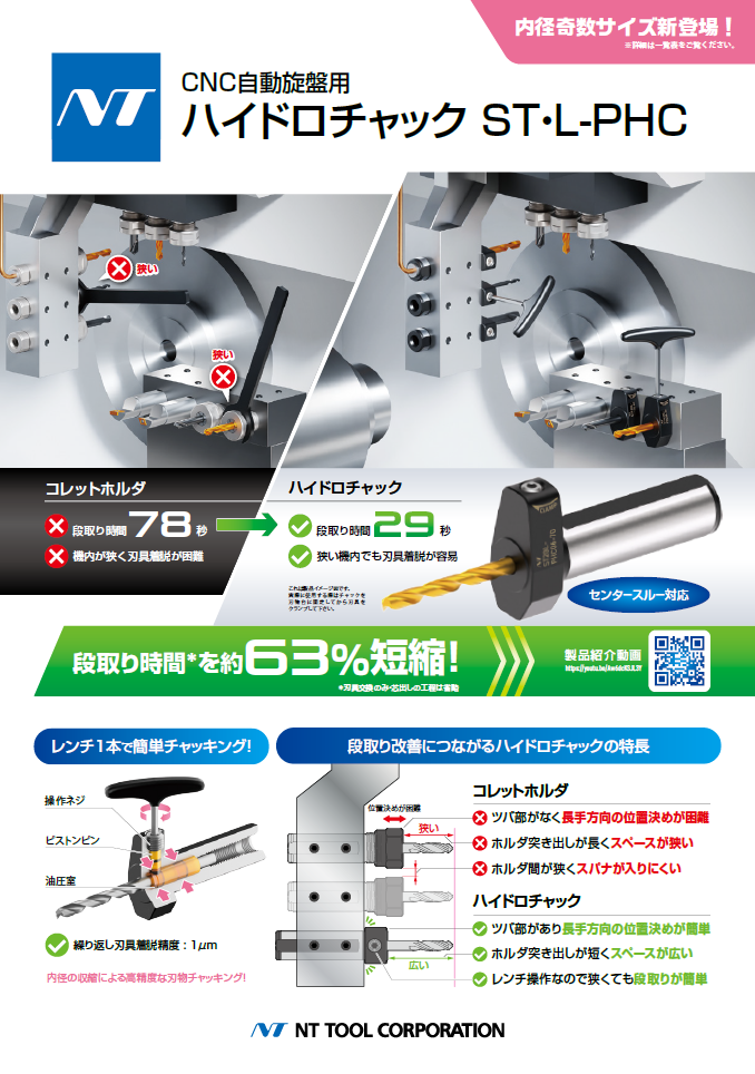 ・高バランス設計で高速回転に対応 ・締め切るだけで高精度・高剛性 ・刃具抜け・スリップを防止する内径構造