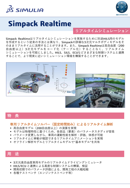 Simpack Realtimeは、従来の手法とは異なり、別途HILSモデルを作成する必要なく、詳細な3次元マルチボディモデルをそのままリアルタイムに利用します。高自由度(200以上)の3次元モデルをコード化せずに、リアルタイムシミュレーションを実現しま...