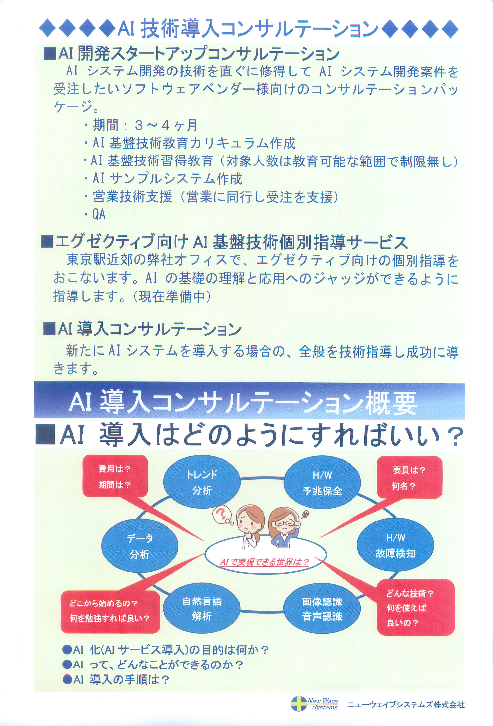 新たにAIシステムを導入する場合の、全般を技術指導し成功に導きます。