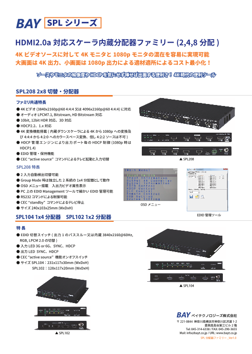 4K ビデオソースに対して4K モニタと1080p モニタの混在を容易に実現可能 大画面は4K 出力、小画面は1080p 出力による適材適所によるコスト最小化! ソースやモニタの解像度やHDCP を気にせず挿せば出画する便利さ! 4K 時代の便利ツー...