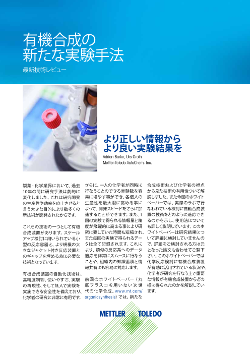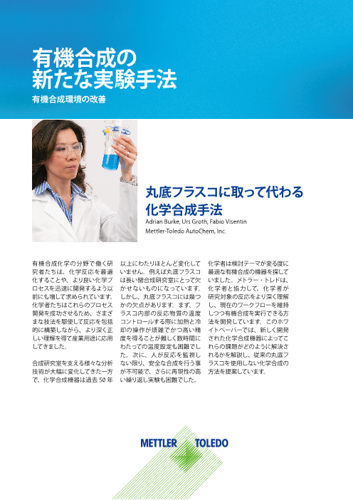 ホワイトペーパー – 丸底フラスコを用いない有機合成手法 – では丸底フラスコから次世代の実験器具を取り入れた化学者の方々の新しい実験手法についてご紹介しています。 ・オイルバスやアイスバスを使用せず、簡単に温調する方法 ・24時間いつでも反応を行い...