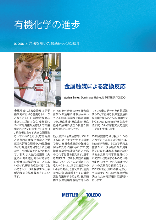 ・ホワイトペーパー 「有機化学の進歩 - 金属触媒による変換反応」では、さまざまな化学反応のメカニズムと反応経路を理解するための情報収集に、In Situ FTIRがいかに効果的であるかご説明します。また有機化学における最近動向についても述べています。 ...