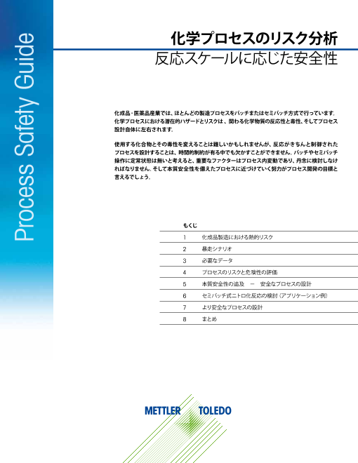 もくじ 1 化成品製造における熱的リスク 2 暴走シナリオ 3 必要なデータ 4 プロセスのリスクと危険性の評価 5 本質安全性の追及 - 安全なプロセスの設計 6 セミバッチ式ニトロ化反応の検討(アプリケーション例) 7 より安全なプロセ...
