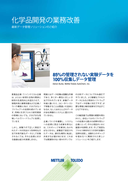 医薬品企業・ファインケミカル企業は、よりよい新規化合物の開発と研究の生産性向上を図るうえで、情報共有と業務改善および企業ノウハウ構築に向け、さまざまなソフトウェアへの投資を続けています。同時に化学プロセス研究開発の現場においても、さまざまな現場レベルでハ...