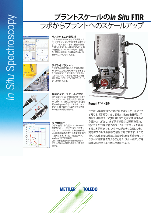 ReactIR™ 45P ラボから実機製造へ反応プロセスをスケールアップすることは容易ではありません。ReactIR45Pは、ラボまたは防爆エリア(ATEXに基づく)にて使用するよう設計されており、まずラボで反応の理解を深め、続いてその知見に基づきプラ...