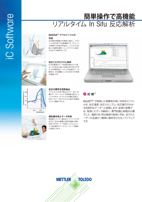 ReactIR™ で取得した信頼性の高い中赤外スペクトルを、反応速度・反応メカニズム・反応進行のわかる包括的なデータへと変換します。従来の装置では、取得したデータ解析に、専門知識と時間が必要でした。最新のiC IRは独自の技術に予定、全てのユーザーが迅速...