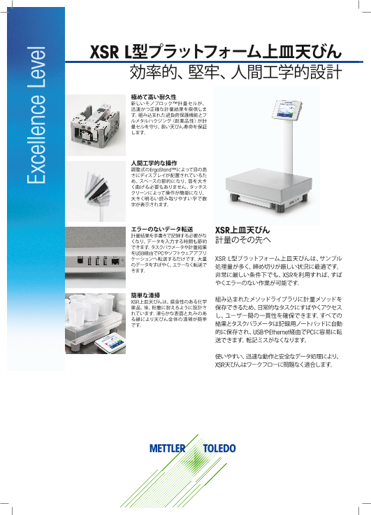 XSR上皿天びん - 計量のその先へ XSR L型プラットフォーム上皿天びんは、サンプル処理量が多く、締め切りが厳しい状況に最適です。 非常に厳しい条件下でも、XSRを利用すれば、すばやくエラーのない作業が可能です。 組み込まれたメソッドライブ...