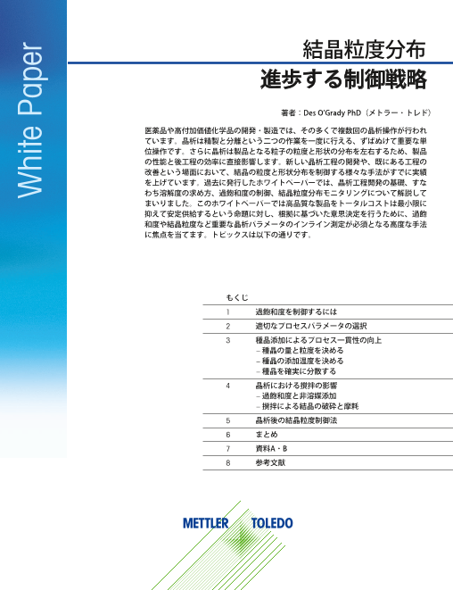 結晶粒度分布の戦略 製薬業界や高付加価値製品を製造する化学産業では、多くの製品において開発と製造段階で複数の晶析工程が採用されています。晶析は精製、分離が同時に行える便利な操作です。...