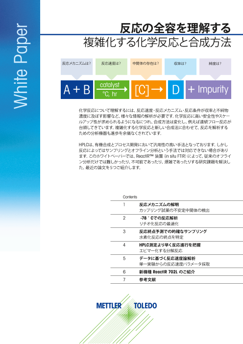 研究者が必要とする十分な情報をHPLC単独では得られなかった5つの例をご紹介します。 全てのケースで、in-situ分析は、HPLC分析を補完し、プロセスの改善に役立ちます: ・反応メカニズムの理解 - カップリング試薬中の不安定な中間生成物の...