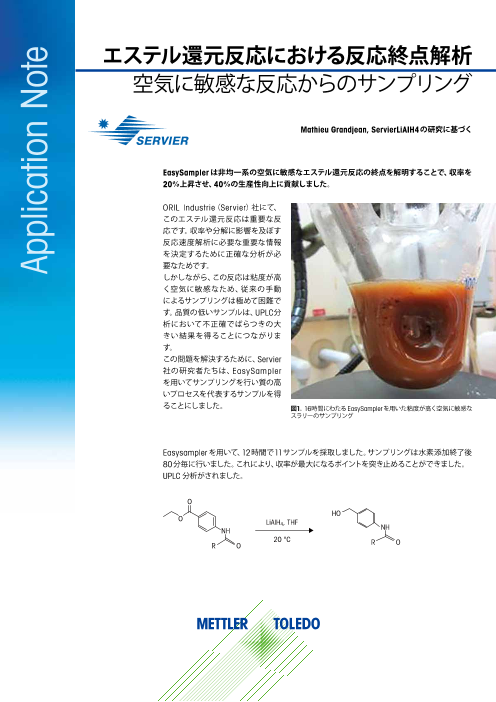 EasySampler™ 1210 オフラインでのサンプルの分析は反応プロセスや不純物の測定には標準的な方法ですが、サンプル採取は必ずしも正確に行われているとは限らず、高温下やスラリーのサンプリングは困難なことがあります。また、サンプリング後のクエンチ...