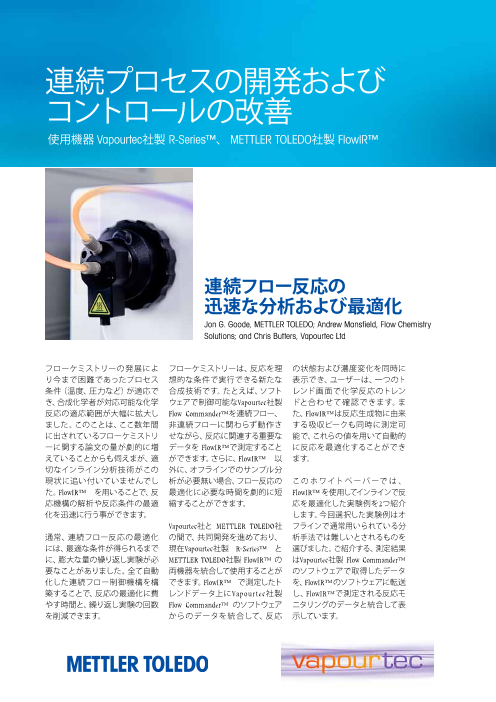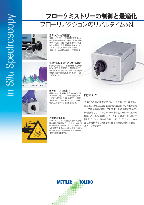FlowIR™ 大学から企業の研究まで、フローケミストリーは新しい反応とプロセスにおける生成物の質と収率の向上を目的として使用頻度が増加しています。HPLC 等のオフライン解析技術ではフローリアクター中で起こる素早い反応を解析していくことが難しいことも...