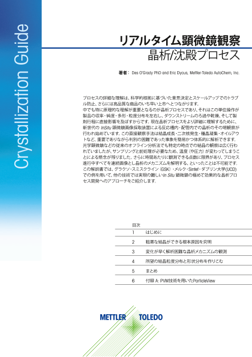晶析は有機合成プロセスで共通して行われる一工程であり、化合物の単離・精製を目的としています。近年、化学工学の研究員が晶析工程の開発に割く時間は増大しています。合成プロセスの中間工程は、晶析により、不純物除去と効率的な後工程のろ過を改善することができます。...
