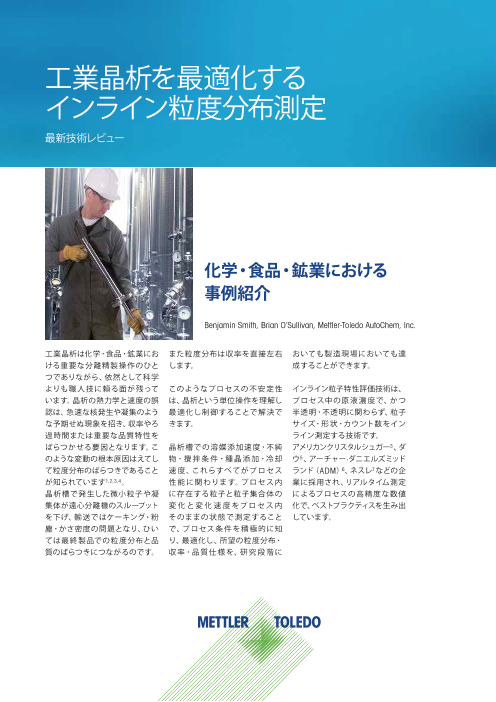 化学、鉱業、食品産業において、工業晶析は分離と精製を行う重要なステップです。 晶析プロセスのばらつきの一般的な原因として、粒径分布のばらつきがあげられます。 このプロセスに関わる難題を解決するためには、インライン粒子特性評価を用いて、半透明または不透明な...