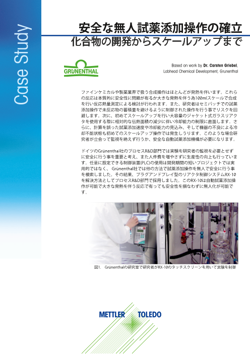 化成品開発やスケールアップ検討において発熱を伴う反応は本質的に危険性が高いとみなされ、絶え間ない観察あるいは自動で安全な試薬添加制御が必要であるとされてきました。 このケーススタディでは、大手製薬会社であるGrünenthal社のプロセス研究開...