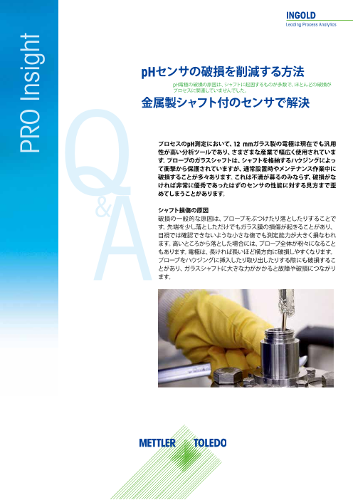 プロセスのpH測定において、12 mmガラス製の電極は現在でも汎用 性が高い分析ツール InPro 428iおよび488i pHセンサ • チタンシャフト:最高でガラス電極の10倍の引張強度 • PEEKキャップが膜を破損から保護 • 優れ...