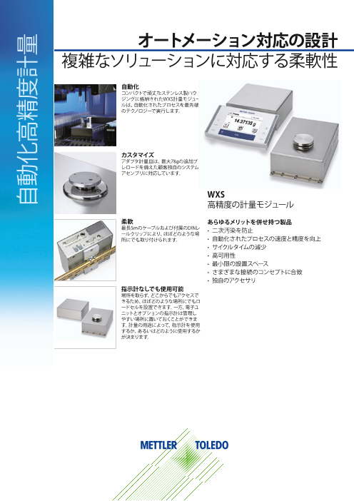 WXS205およびWXS204計量モジュールは装置や機械への組込、またはアイソレータ内で、高精度の自動計量や手動計量向けに設計されました。コンパクトな設計により、設置面積は小さく、機器の据付も容易です。広範囲な過付加保護機能により広範囲なアプリケーション...