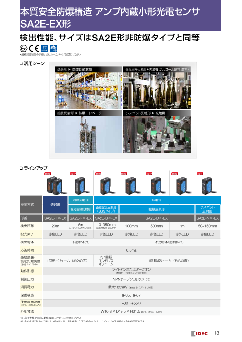 特長: 検出距離バリエーション Pタイプ:偏光回帰反射形 Dタイプ:拡散反射形 Bタイプ:距離設定形 Nタイプ:小スポット形 応答時間0.5ms 高速搬送を検知 さまざまなワークに対応しやすいスポット径(BGSタイプ) エアパージユニット...