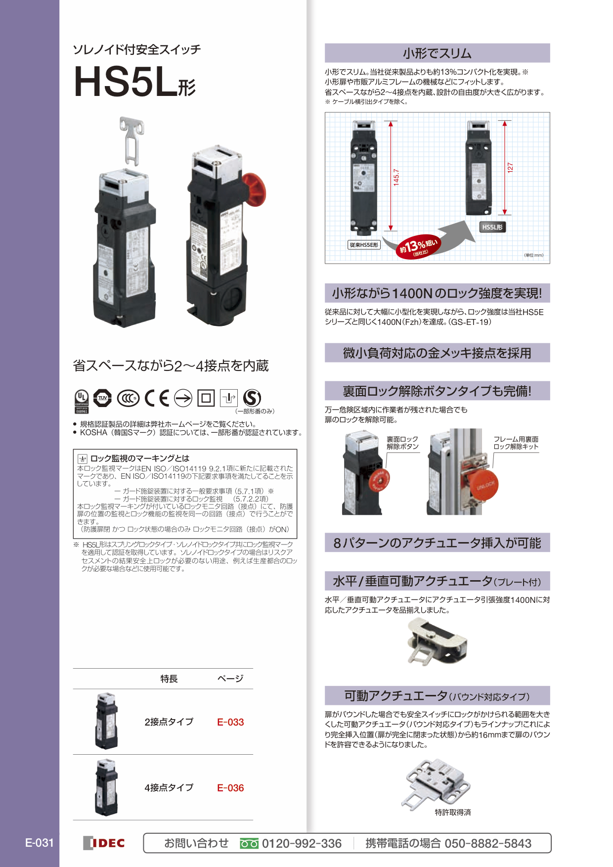 ■小形でスリム 当社従来製品よりも約13%コンパクト化を実現 (※ケーブル横引出タイプを除く) 小形扉や市販アルミフレームの機械などにフィット 省スペースながら2~4接点を内蔵し、設計の自由度が広がります。 ■1400Nのロック強度...