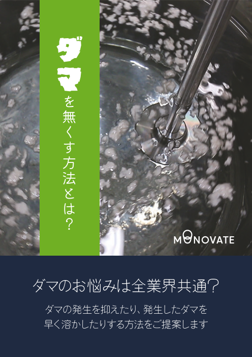 MONOVATEでは材料自体の性質を変えることはできませんが、作業方法の見直しや生産設備の改良や導入によってダマの発生を抑えたり、発生したダマを早く溶かしたりする方法をご提案しています。 この資料では、ダマを無くすためにできる対策をいくつかご紹介し...