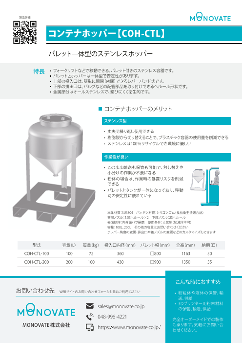 この冊子は、主にステンレス製のホッパーや設備で粉体を扱うお客様を対象に、工程の課題解決のヒントとなる情報をご紹介します。 内容は以下の3つの柱で構成されています: 1. 基礎的な情報を解説する「コラム」 2. お客様の実際の課題に対してMONO...