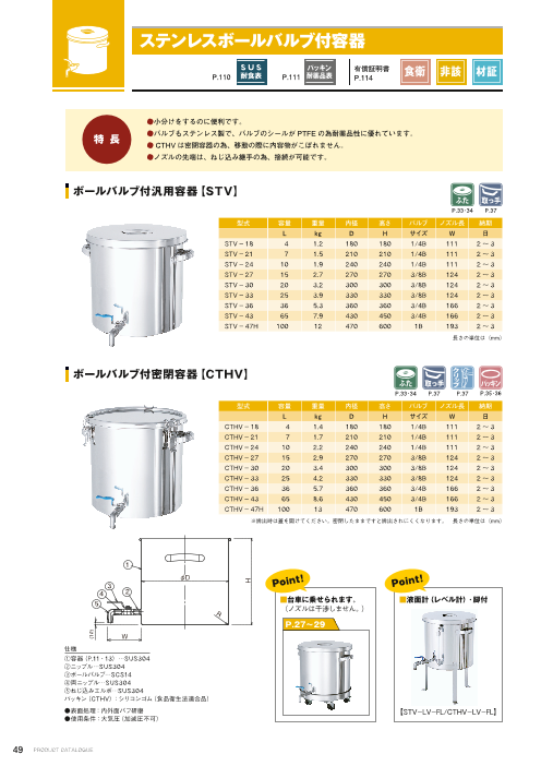 ○小分けをするのに便利です。 ○バルブもステンレス製で、バルブのシールがPTFEの為耐薬品性に優れています。 ○ノズルの先端は、ねじ込み継手の為、接続が可能です。