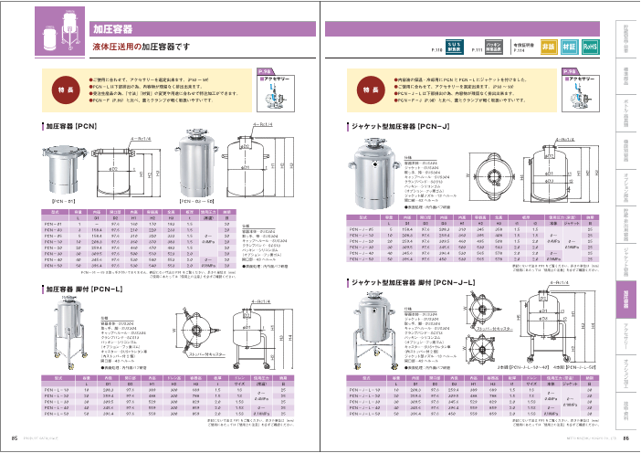 開口部がへルール(4Sサイズ)のスタンダードな圧力容器です。 スチームや水で温度調節できるジャケット付きのステンレスタンクです。 ○内容液の保温・冷却用に【PCN】にジャケットを付けました。 ○ご使用に合わせて、アクセサリーを選定出来ます。 ...
