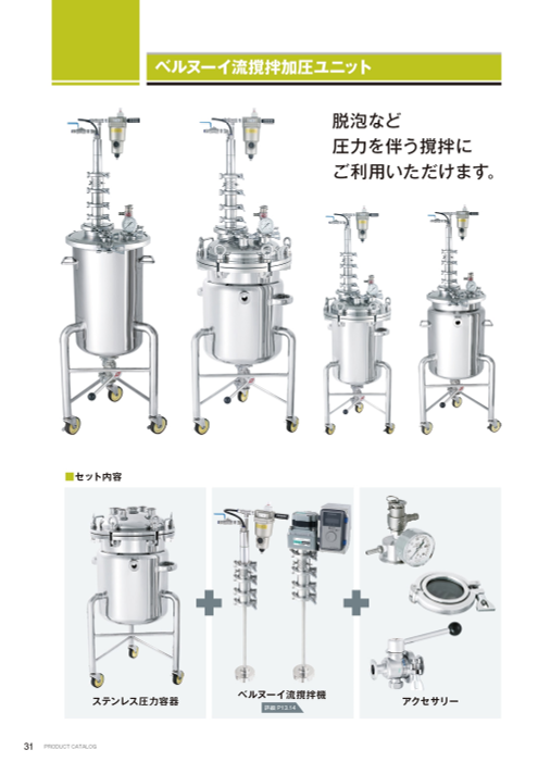 耐圧仕様のステンレス容器と撹拌機のユニットを集めました