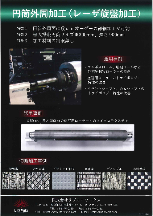円筒外周へのマイクロ微細加工、加工パターン例をご紹介