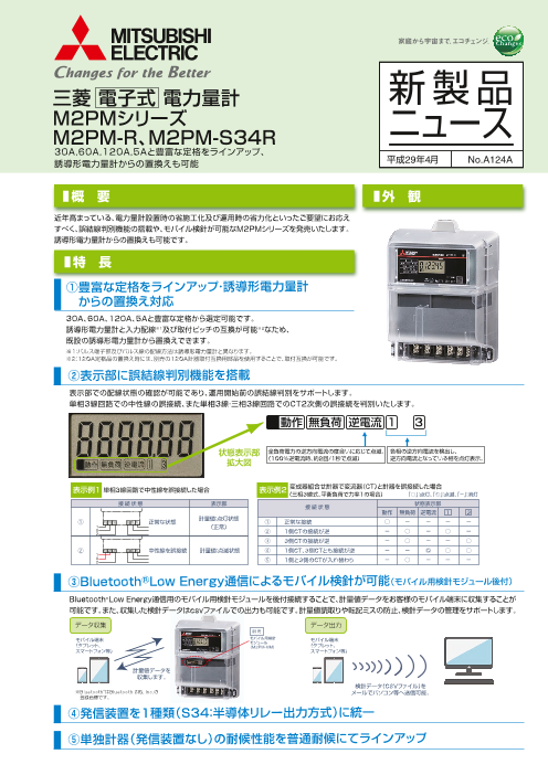誤結線判別機能の搭載や、モバイル検針が可能なM2PMシリーズに三相4線式を追加ラインアップしました。誘導形電力量計からの置換えも可能です。【特徴】◆誘導形電力量計...