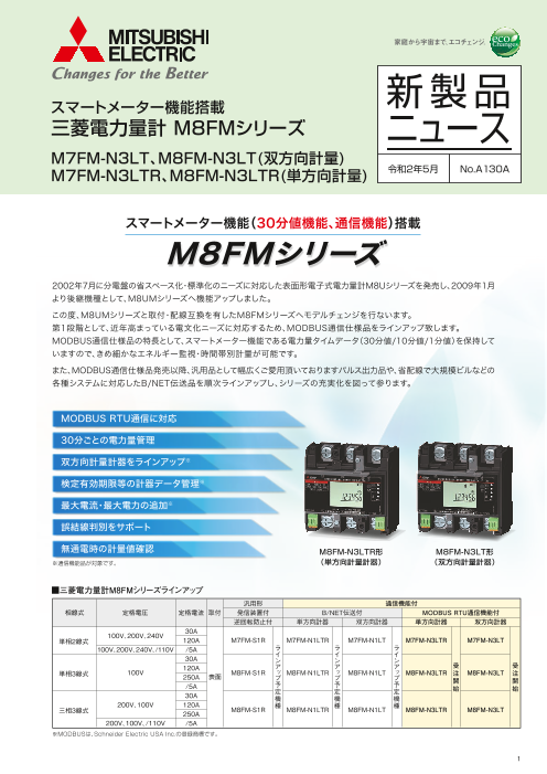 2002年7月に分電盤の省スペース化・標準化のニーズに対応した表面形電子式電力量計M8Uシリーズを発売し、2009年1月より後継機種として、M8UMシリーズへ機能アップしました。...