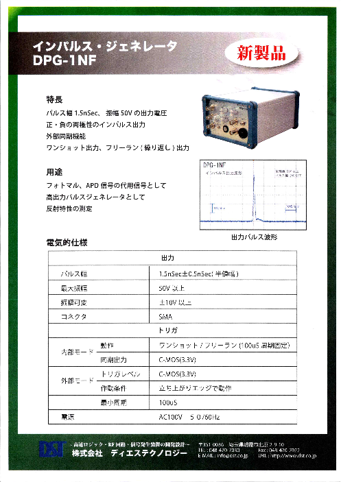 ○正・負の両極性のインパルス出力○外部同期機能○ワンショット出力、フリーラン(繰り返し)出力◆詳細は、カタログをダウンロードしてご覧ください。