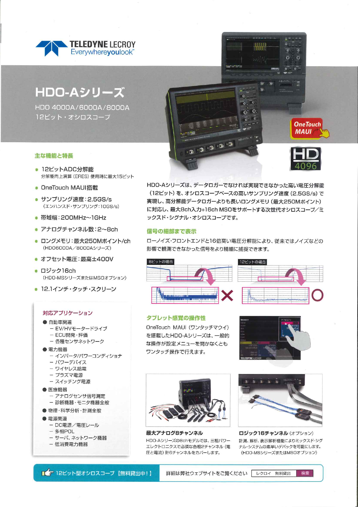 HDO-Aシリーズは、データロガーでなければ実現できなかった高い電圧分解能(12ビット)を、オシロスコープベースの高いサンプリング速度(2.5GS/s)で実現し、高分解能データロ...