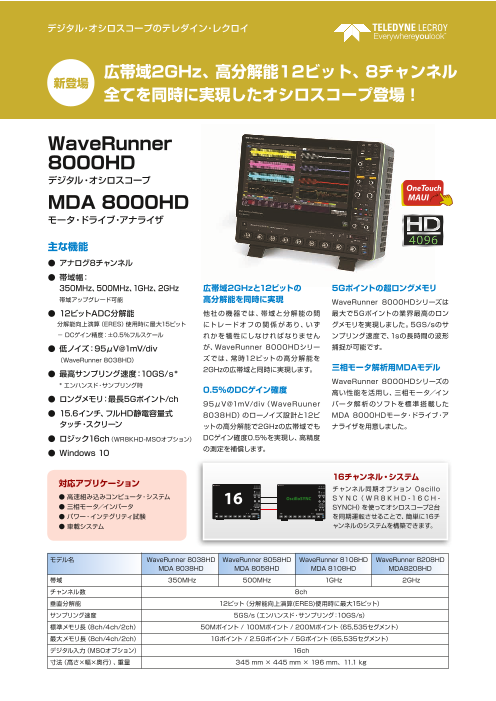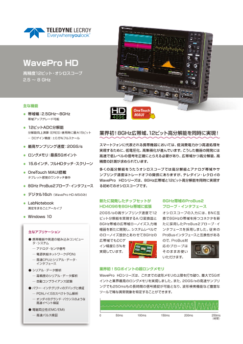 次世代オシロスコープ製品 3/4/5/6シリーズ・オシロスコープは、世界最大クラスの大型タッチ・ディスプレイと直観的ユーザ・インタフェースを備え、12ビットADやFlexChannelなど...