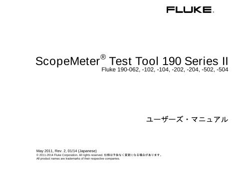 本書の説明は、ScopeMeter® テスト・ツール 190 シリー ズ II(以下、「本器」)の全機種に該当します。これらの モデル番号は以下に示す通りです。ほとんどの説明図で ...