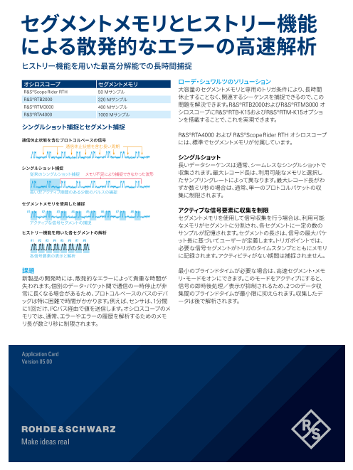ローデ・シュワルツのソリューション大容量のセグメントメモリと専用のトリガ条件により、長時間休止することなく、関連するシーケンスを捕捉できるので、この問題を解決でき...