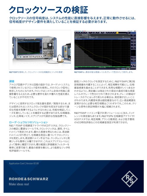 R&S®FSWP 位相雑音アナライザ/VCOテスタは、超低雑音の内蔵信号源と相互相関により、きわめて高い感度を実現しています。レーダーアプリケーションなどに用いられるきわめて安定...