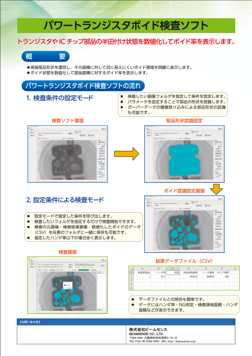 ・実装部品形状を識別し、その面積に対して目に見えにくいボイド領域を明確に表示します。・ボイド状態を数値化して部品面積に対するボイド率を表示します。◆詳細はカタロ...