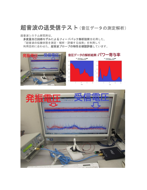 超音波の送受信テスト(音圧データの測定解析)超音波システム研究所は、 多変量自己回帰モデルによるフィードバック解析技術を応用した、 「超音波の伝搬状態を測定...