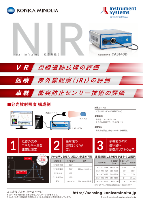 ーーー製品ラインアップーーー【高速分光測光器 CAS140D】 ・NIR光源のエネルギー量を正確に測定 ・幅広いアクセサリに対応 ・波長範囲により5モデルから選択可能...