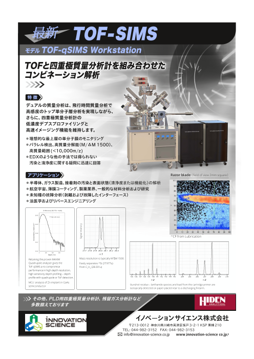 デュアルの質量分析は、飛行時間質量分析で高感度のトップ単分子層分析を実現しながら、さらに、四重極質量分析計の低濃度デプスプロファイリングと高速イメージング機能を維持...