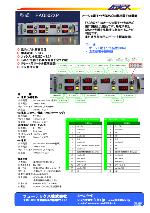 FAG502XPはオージェ電子分光(CMA)用に開発した製品です。熱電子銃とCMA分光器を高精度に制御することが可能です。また外部制御用のポートを標準装備◆詳細はカタログをダウ...