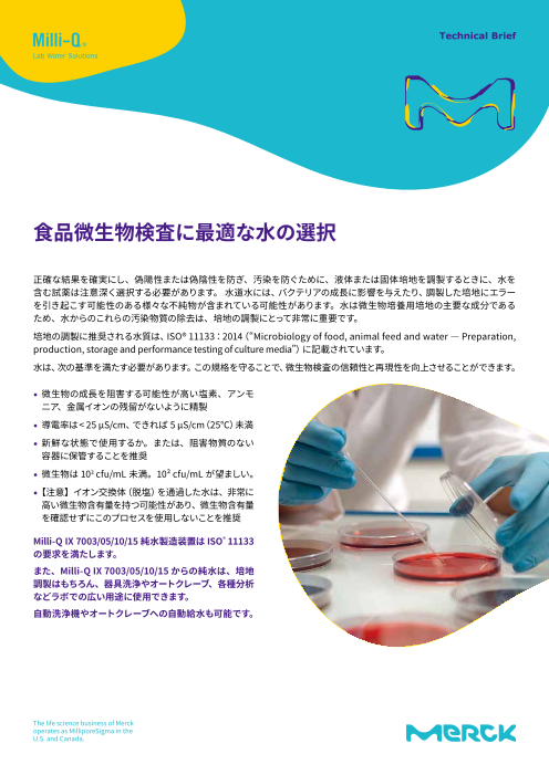 ISO11133の規格と、その基準を満たすメルクの純水製造装置について解説しています。
