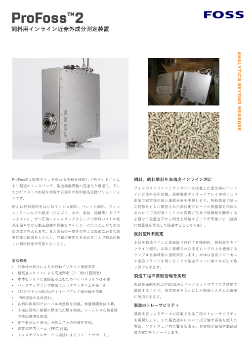 当カタログは、新しい飼料製造支援ソリューションである『ProFoss2』についてご紹介...