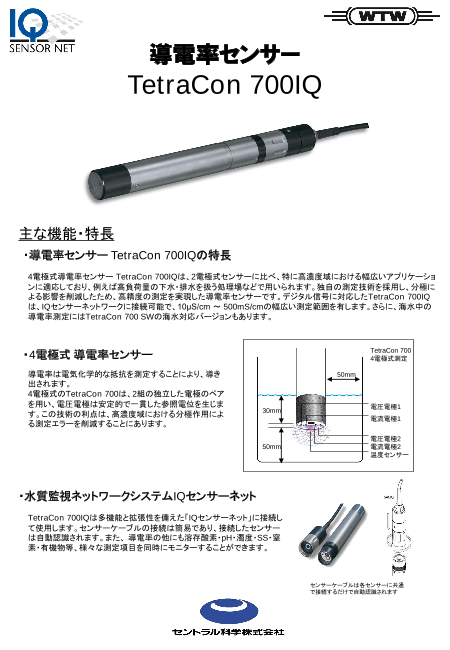導電率を測定するためのセルは、環境水・排水用の4電極式導電率セル(TetraConシリーズ)、純粋・超純水向けの2電極式セル(LRシリーズ)の2種類があります。また安定した値を...
